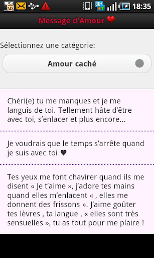 Sms d'amour. Un sms d'amour est un message romantique adressé à une homme ou une femme pour exprimer ses sentiments de manière discrete mais aussi pour informer l'autre que l.